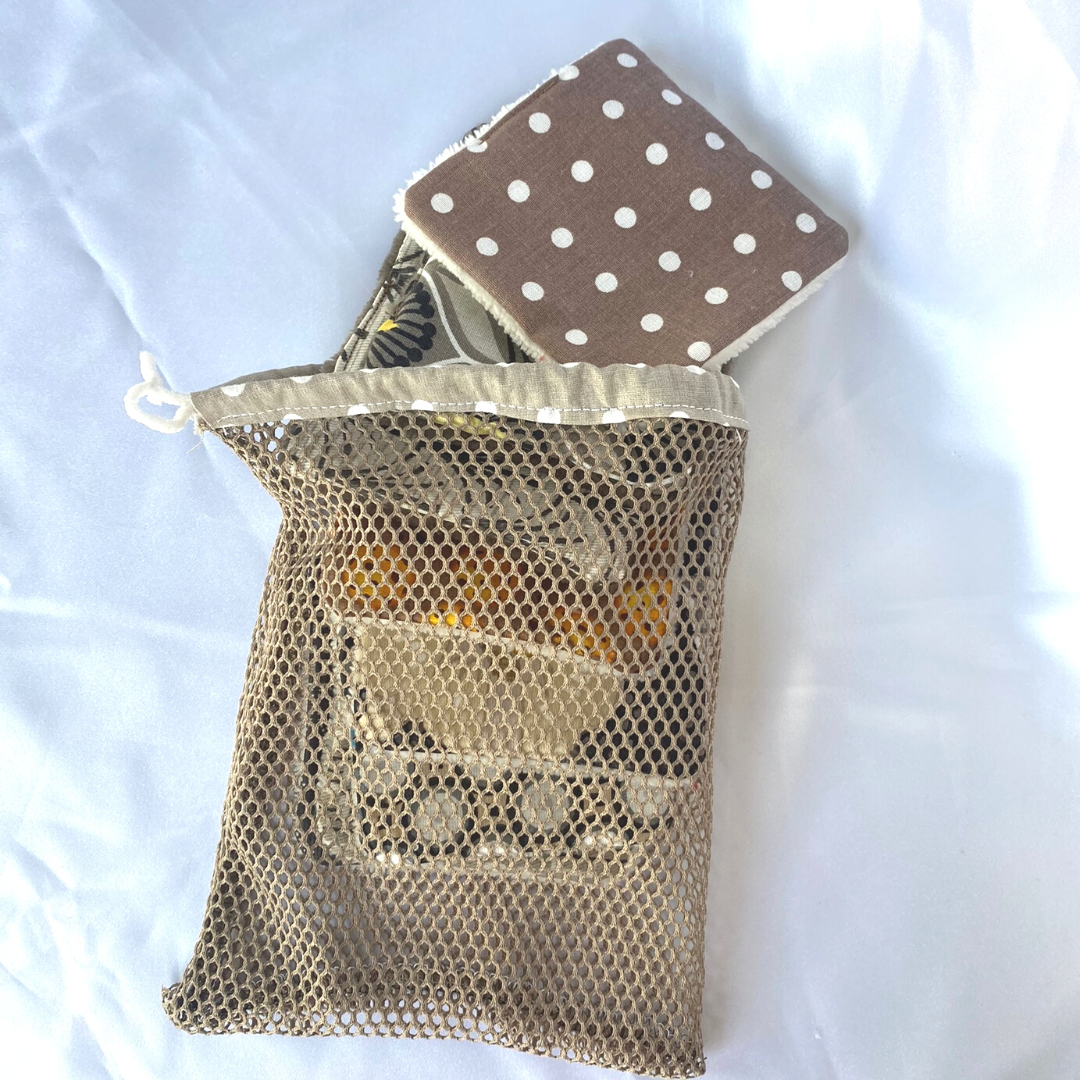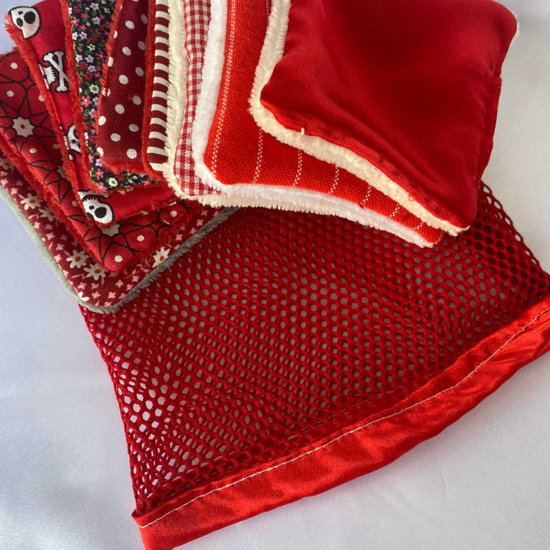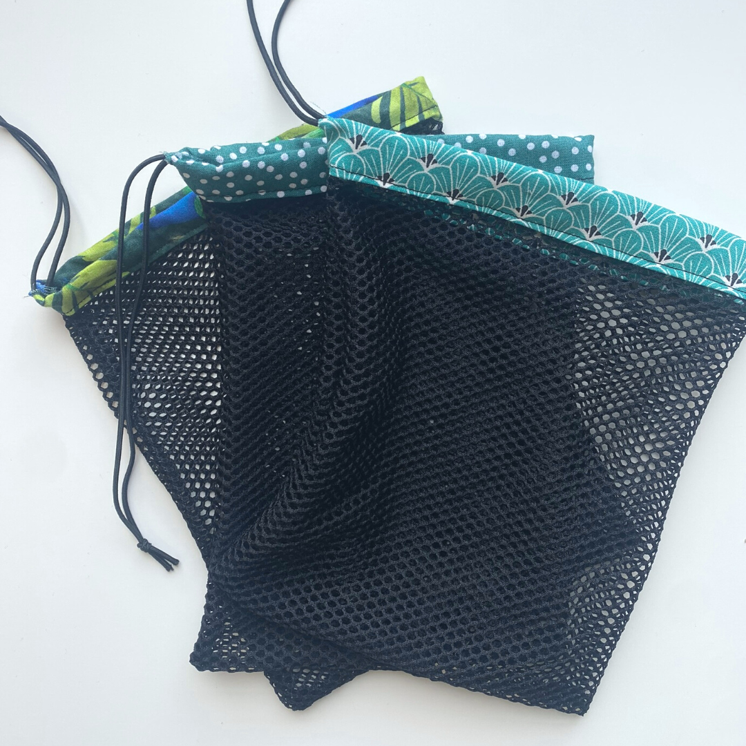 Attention : Les tissus à motifs en haut du filet sont choisis en fonction des chutes. Ils peuvent être différents de ceux présentés en photos. J'opte souvent pour des couleurs en cohérence avec les cotons de votre commande, s'il y en a.