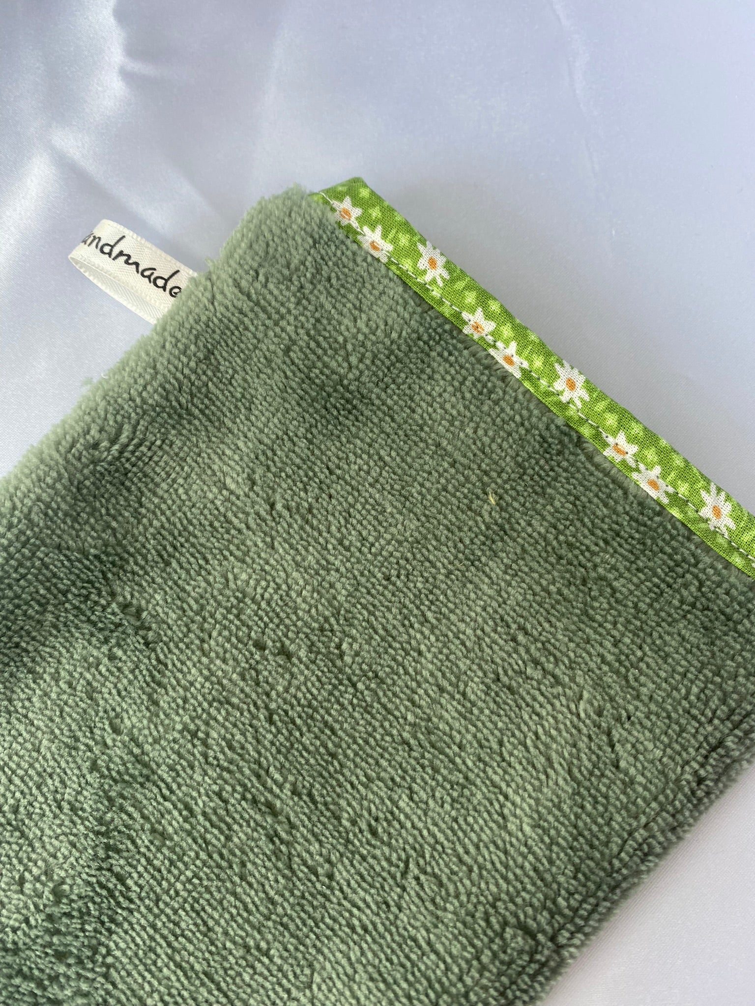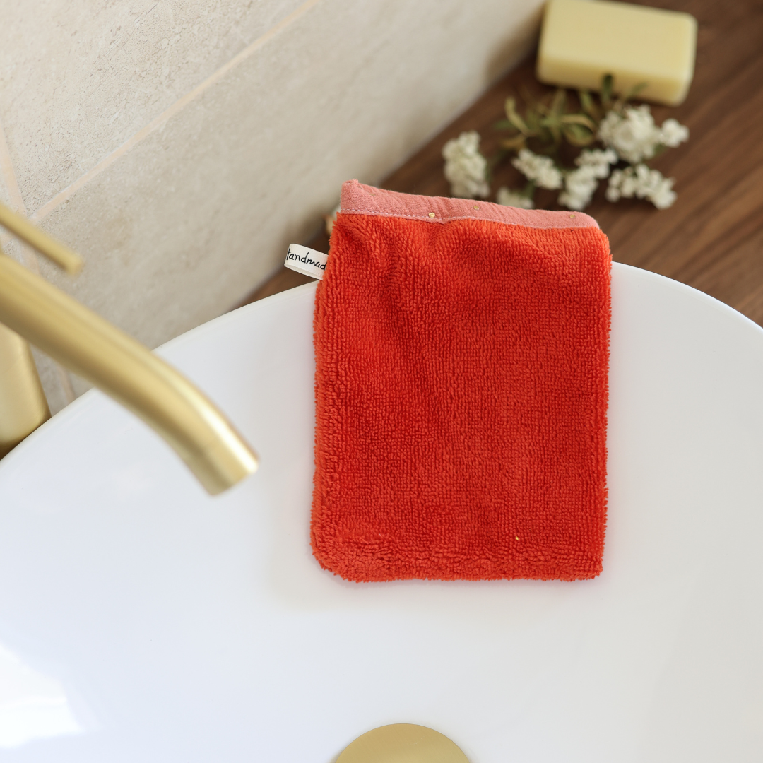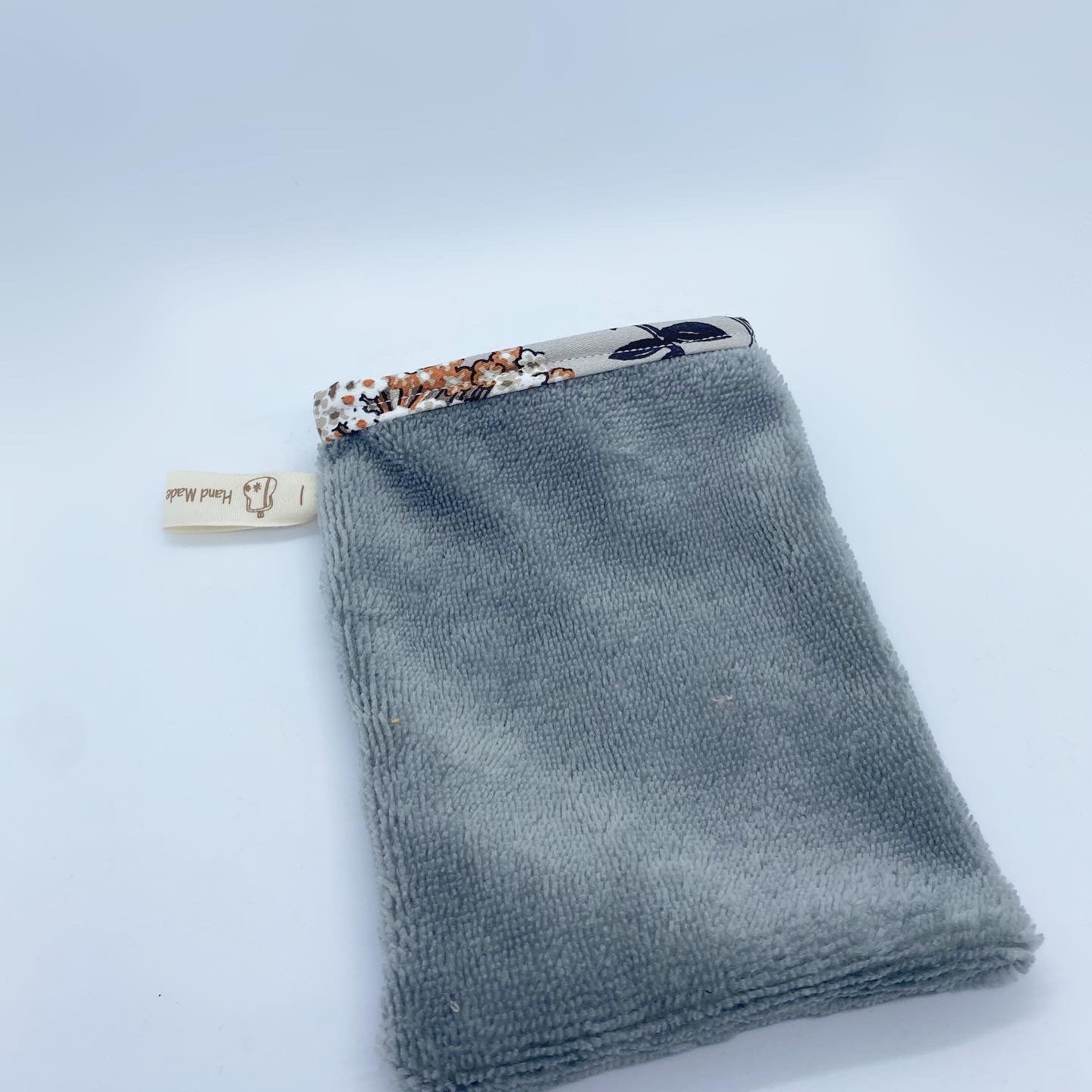 Composition : Les gants sont composés de coton de bambou Bio, tout doux pour ne pas agresser votre peau et vos yeux. Une petite bande en haut du gant composée de coton recyclé donne du charme à cet indispensable.