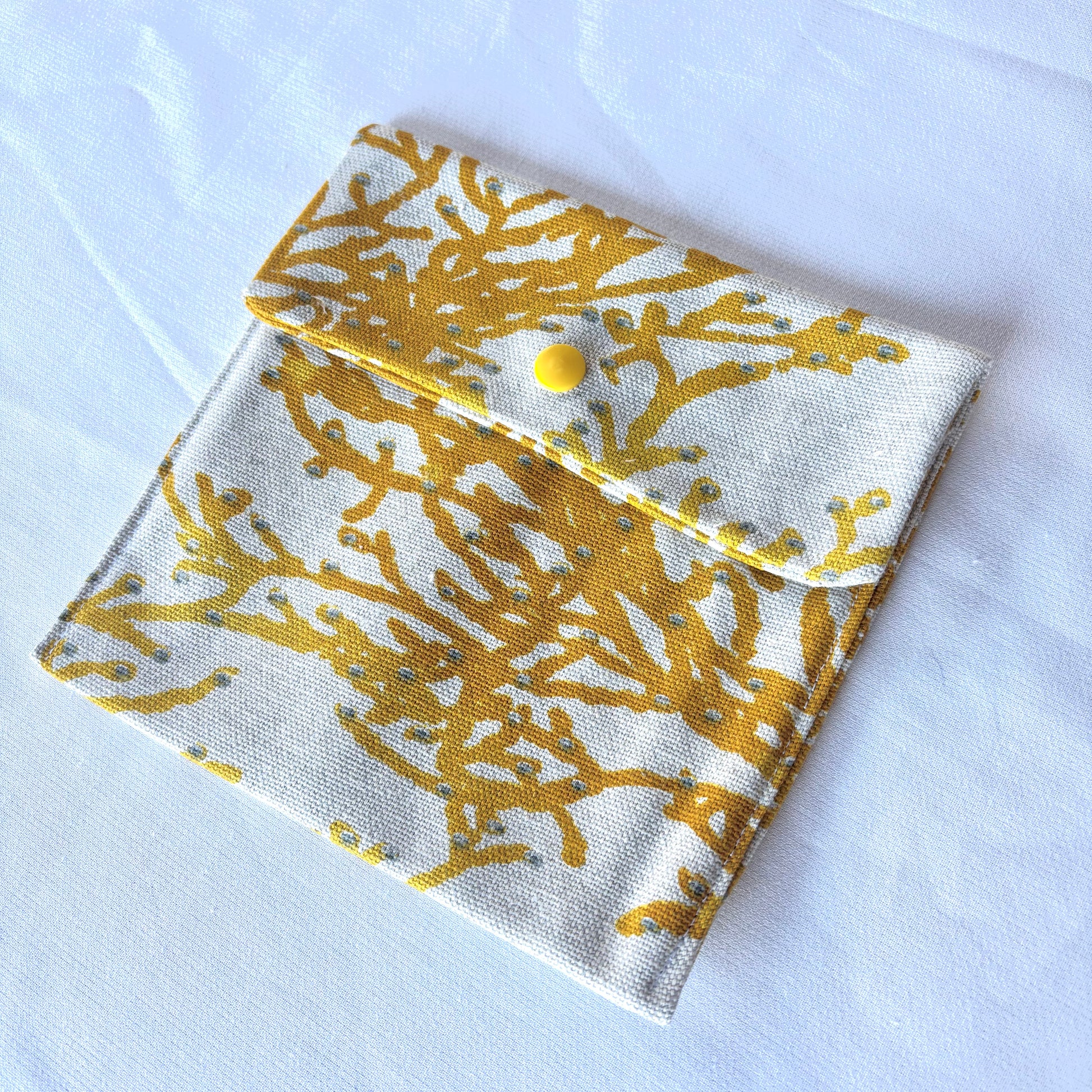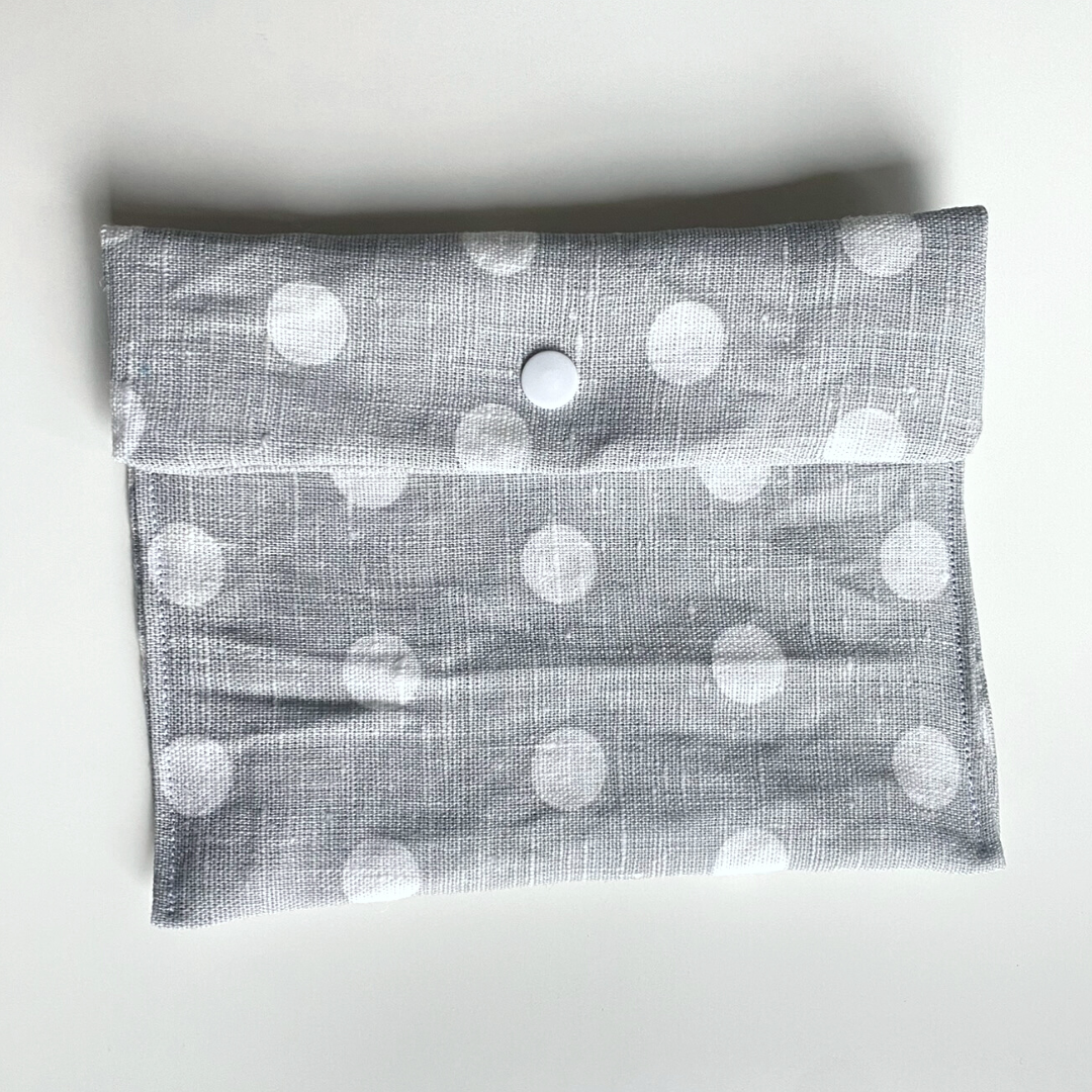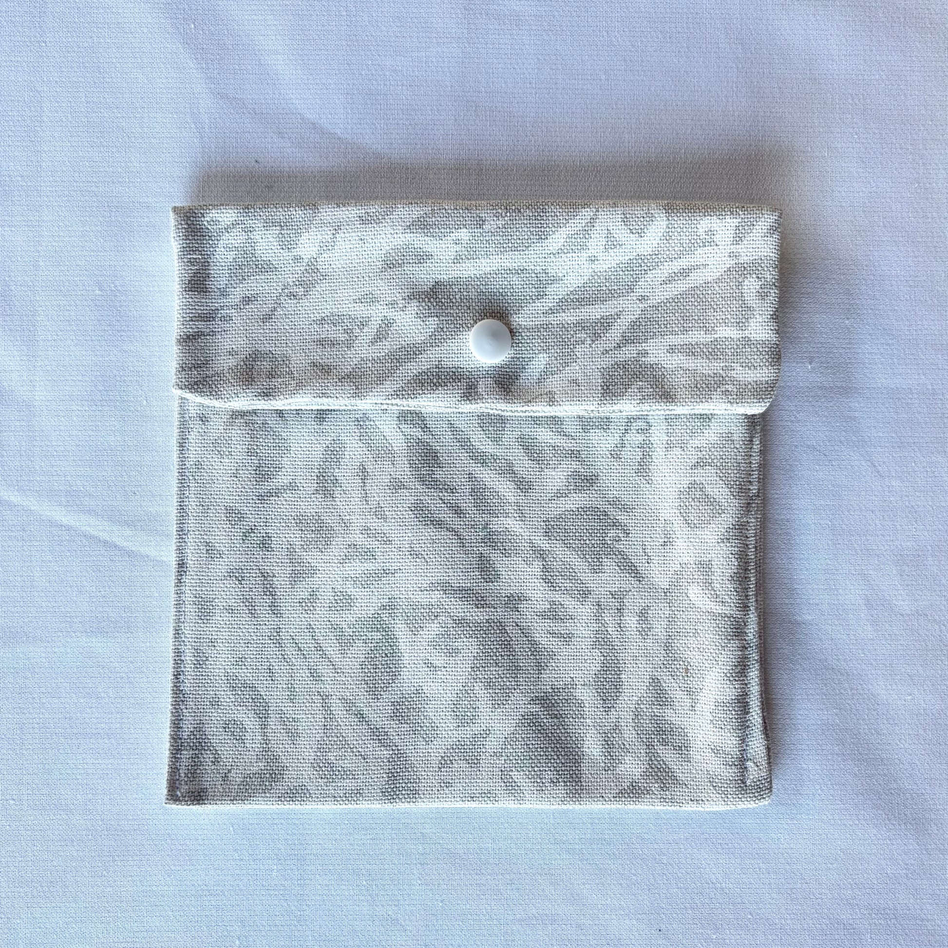 Composition : Les pochettes sont composées de cotons recyclés et d'une pression pour pouvoir refermer simplement votre pochette.