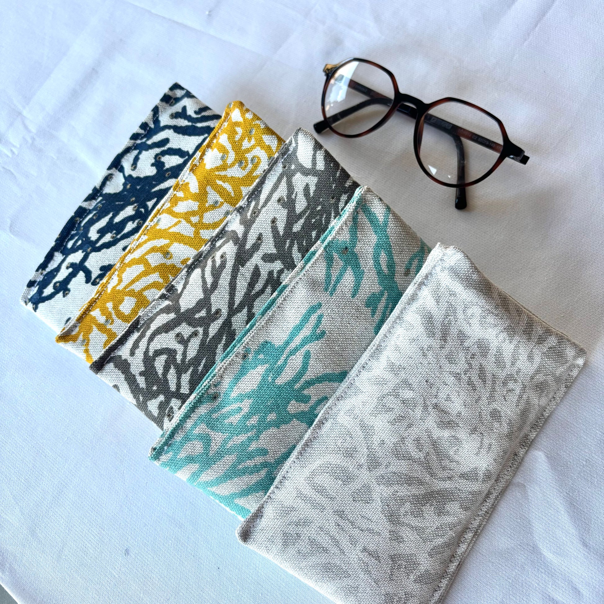 Composition : Les pochettes sont composées de cotons recyclés et d'un rembourrage pour pouvoir protéger vos lunettes de vue ou de soleil.